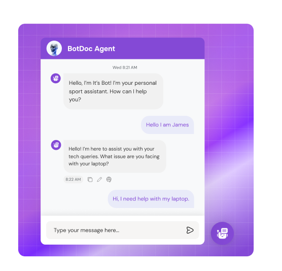 Устали от потерянных лидов из-за медленных ответов? BotDoc — ваш круглосуточный ассистент, обученный конвертировать, поддерживать и квалифицировать клиентов, сохраняя стиль вашей компании.